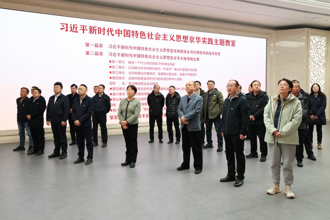 为深入学习贯彻党的二十届四中全会精神,12月11日,党委理论学习中心组(扩大)前往习近平新时代中国特色社会主义思想京华实践教研中心开展集体学习,进一步深入学习贯彻习近平新时代中国特色社会主义思想,强化理论武装,凝聚思想共识,为中国式现代化北京篇章贡献力量。校党委理论学习中心组成员,中层正职、党委职能部门干部参加学习。