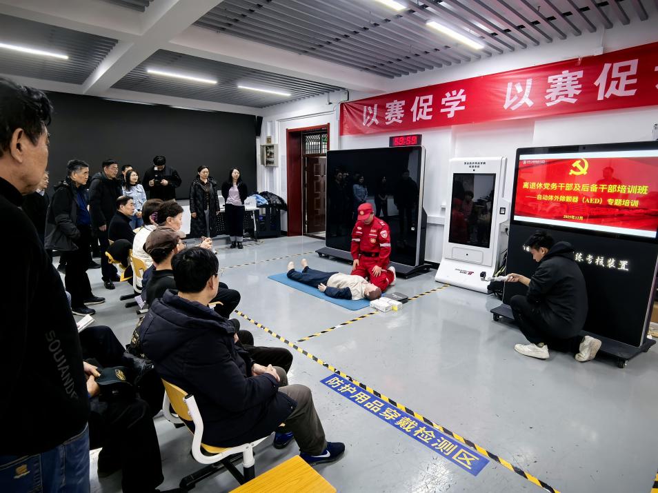 本次培训还联合城市安全学院关工委聚焦应急救护开展自动体外除颤器(AED)专题培训,增强老同志在紧急情况下的自救互救能力并直观感受现代科技在安全领域的应用。