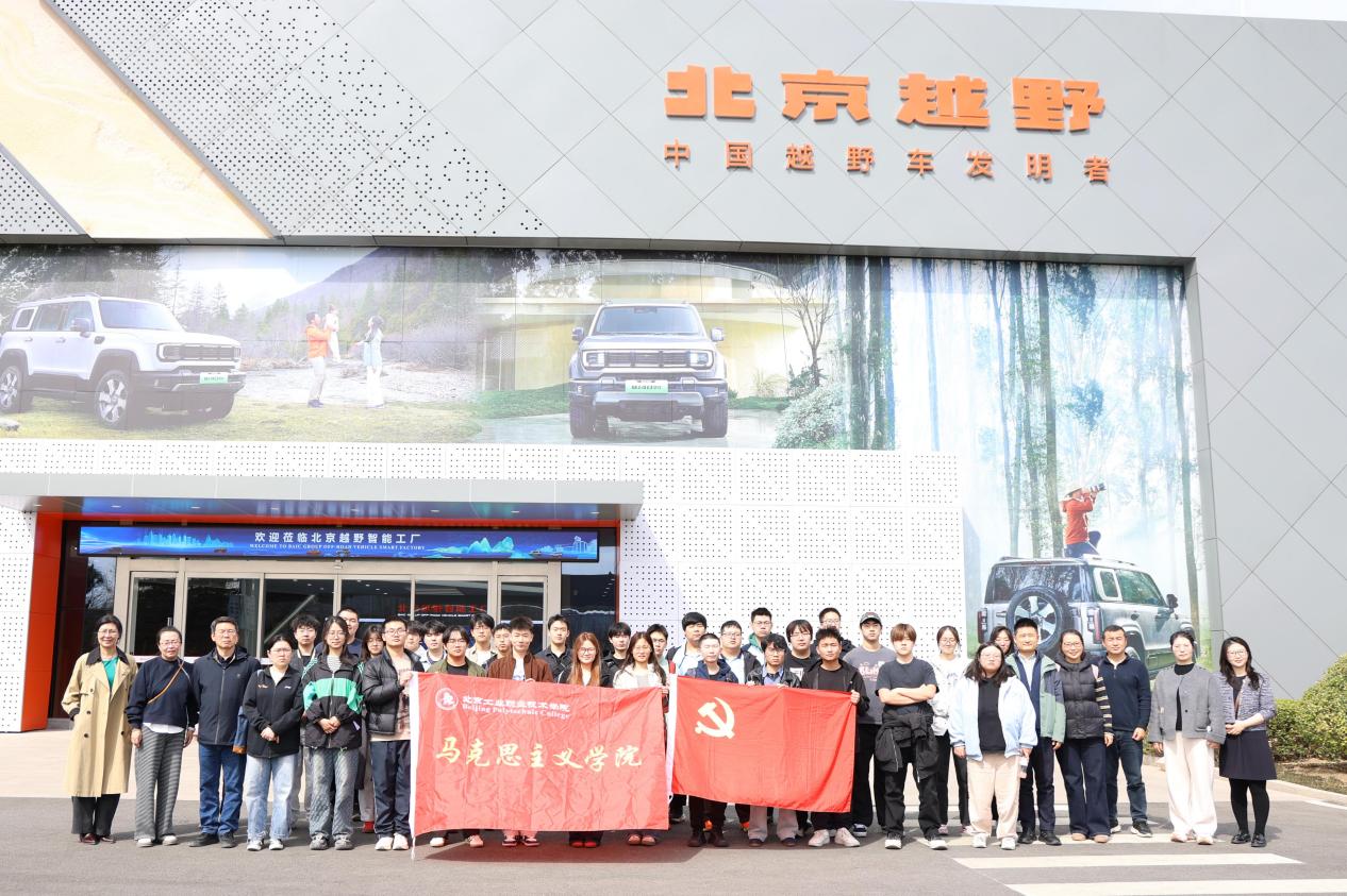 为深入学习贯彻习近平总书记关于“大思政课”的重要指示精神,推动思政小课堂与产业大课堂深度融合,彰显职业教育特色,3月27日,马克思主义学院副院长王军红和思政课教师孙丽萍、张金磊、孙志方、许杨帆、尚大超、郑子君、张杨以及50多位同学走进北汽越野智能工厂,开展了一场别开生面的“生产线上的思政课”实践教学活动。
