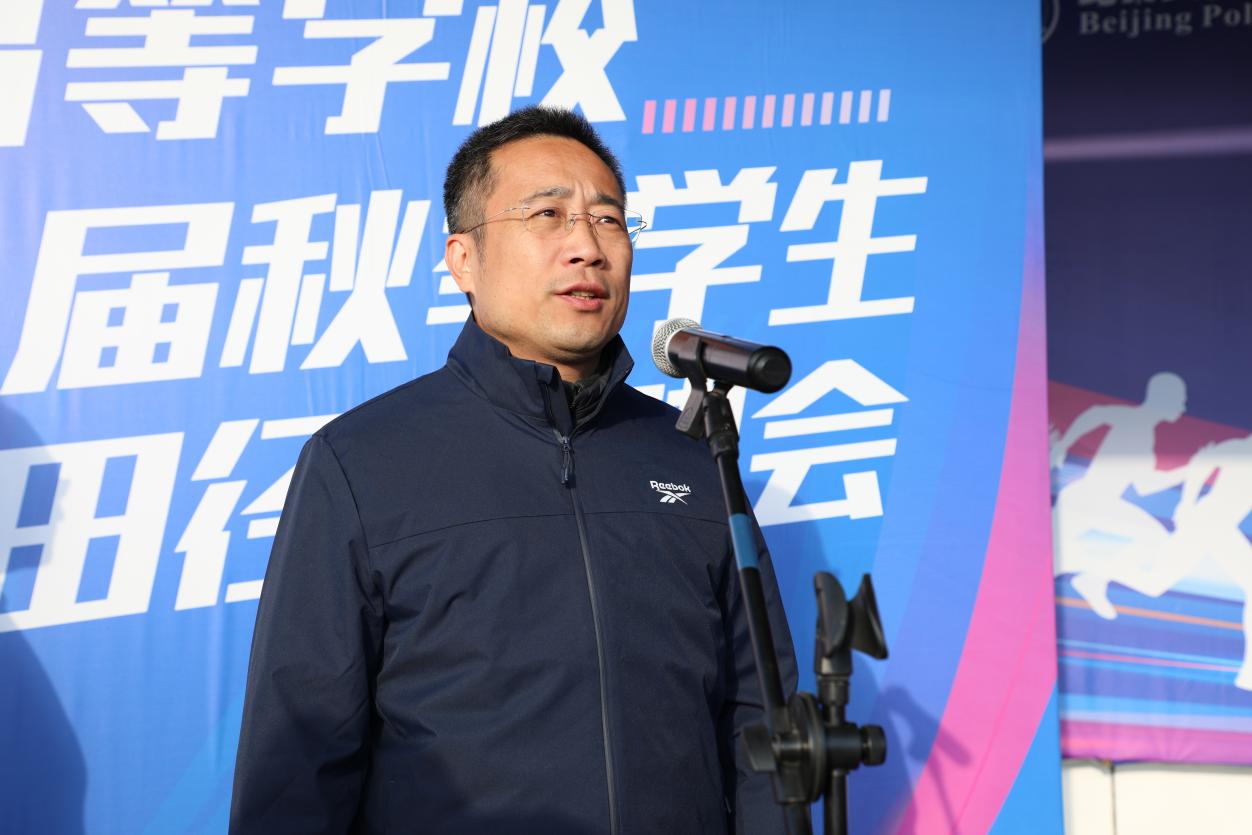 柳长安代表学校致欢迎辞,向莅临盛会的各级领导、嘉宾及参赛高校师生表示热烈欢迎,向长期支持学校发展的各界人士和赛事筹备人员致以诚挚感谢。他介绍,作为全国职业教育改革的先行者,学校首期国家“双高”建设、北京市“特高”建设均以“优秀”等次通过验收,现已入选国家“双高”第二期建设单位,连续三年在市属高校分类发展绩效考核中荣获“优秀”,有信心呈现一场“安全、有序、精彩、难忘”的体育盛事。他表示,首都高校秋季学生田径运动会历经16载传承,已成为展示体育育人成果、促进校际交流融合的重要平台。本届赛事,众多高等职业院校的健儿们与普通本科院校的同学们同场竞技,这充分体现了职业教育与普通教育相互融通、共同发展的时代趋势。他鼓励运动员发扬“更高、更快、更强、更团结”的奥林匹克精神,展现当代大学生的蓬勃朝气。