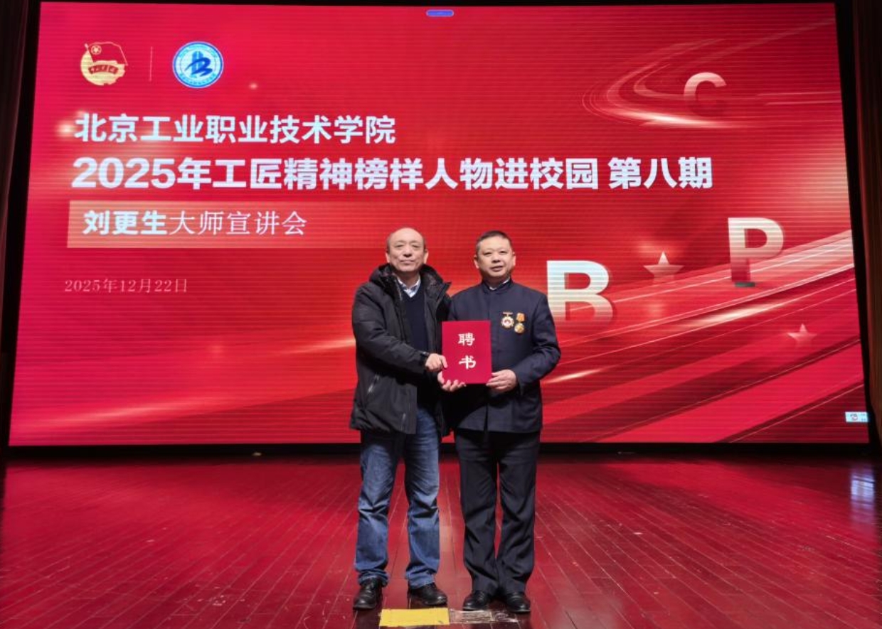 2025年12月22日下午,我校举办了“工匠精神榜样人物进校园”第八期活动——刘更生大师宣讲会。活动特邀全国劳动模范刘更生为师生带来了一场精彩的工匠精神讲座。校党委副书记魏晓东、建筑与测绘工程学院班子成员及师生代表、学生青马班学员等800余人参加活动。建筑与测绘工程学院院长张丽丽主持。