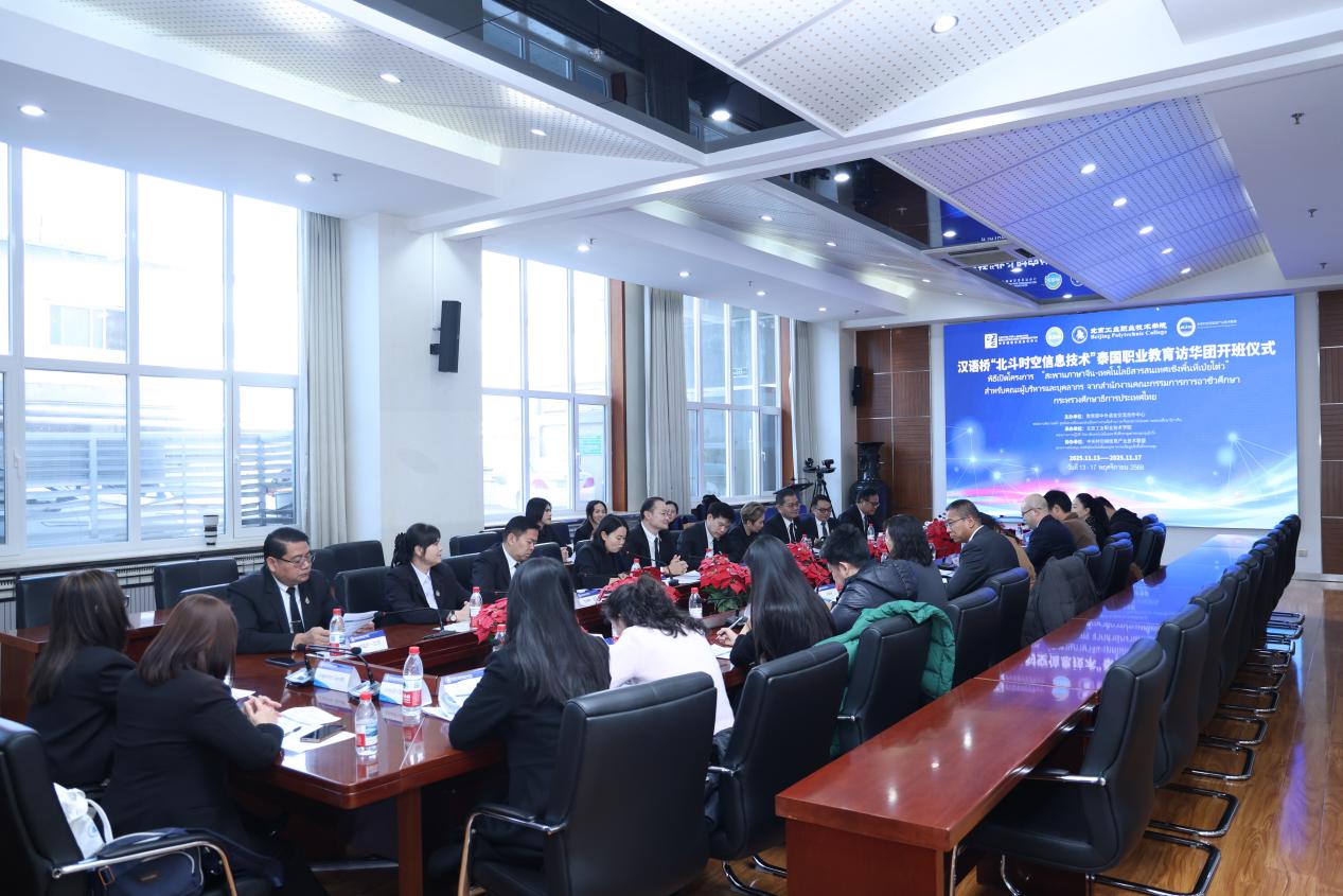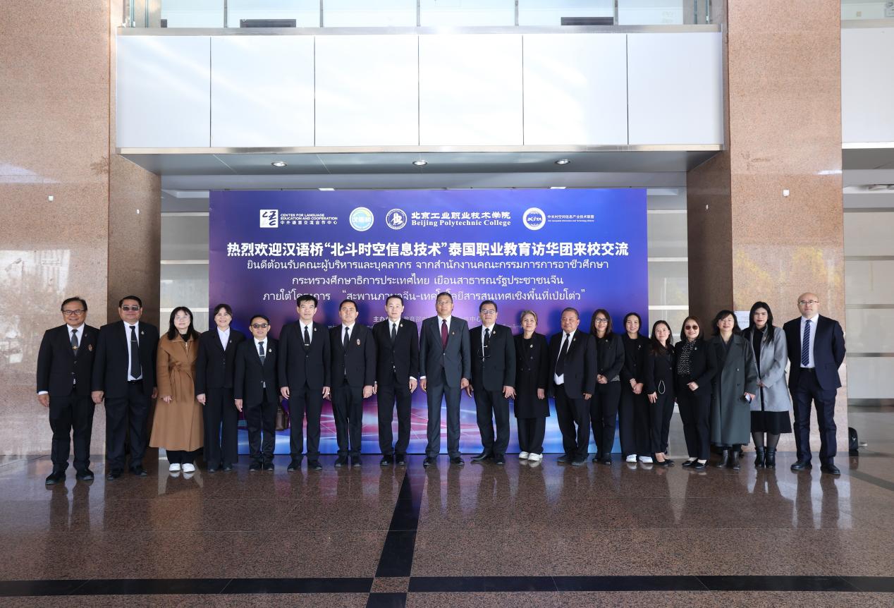 2025年11月13日至17日,由教育部中外语言交流合作中心主办,北京工业职业技术学院建筑与测绘工程学院、国际交流合作处共同承办,中关村空间信息产业技术联盟协办的汉语桥“北斗时空信息技术”泰国职业教育访华团活动圆满落幕。泰国职业教育委员会副秘书长纳侬猜·扎叻卢吉萨率团一行16人访华。此次活动恰逢泰国国王哇集拉隆功对中国进行国事访问的重要节点,成为中泰人文交流与职教合作领域的又一务实成果。