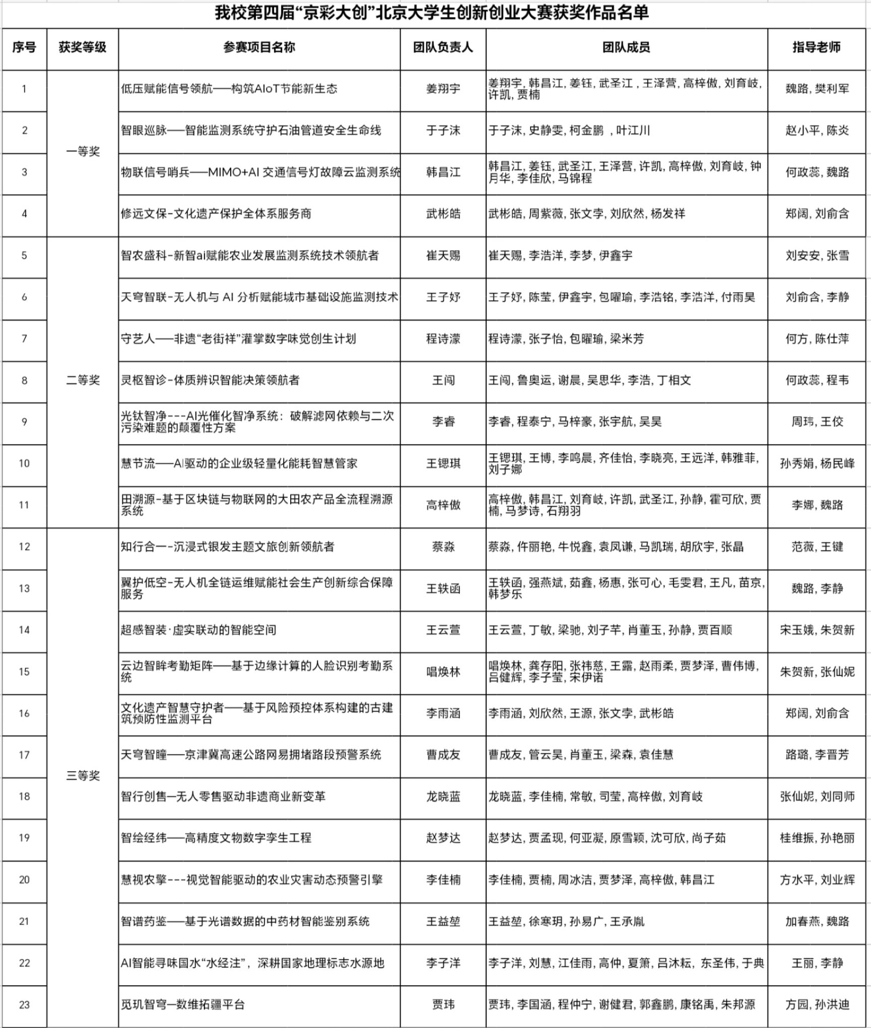 本届大赛以“京彩青春 创响未来”为主题,聚焦“创新引领创业,创业带动就业”。我校自4月份启动大赛以来,在各学院积极响应下共征集53件作品,通过赛前训练营的专项培训及举办校内选拔赛最终推荐30项作品参加本届大赛市赛。我校参赛的项目紧密围绕国家战略需求与前沿科技领域,覆盖了人工智能、生物医药、新能源、文化创意、乡村振兴等多个方向。