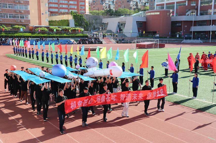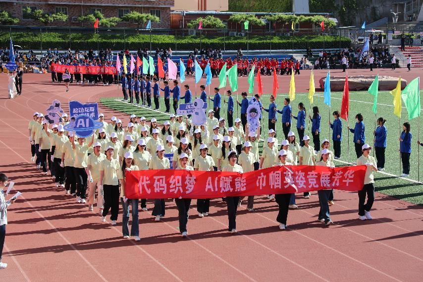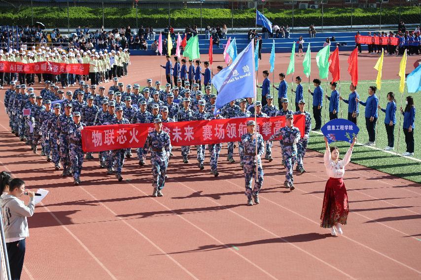开幕式在激昂的旋律中拉开帷幕。护旗方阵高擎国旗、校旗庄严入场,裁判员方阵和各学院代表队紧随其后。师生们步伐铿锵、口号嘹亮,来自不同学院和职能部门的团体方阵各出新意、各展风采,用响亮的口号与精心设计的表演表达着对这场体育盛会的期待与热爱。