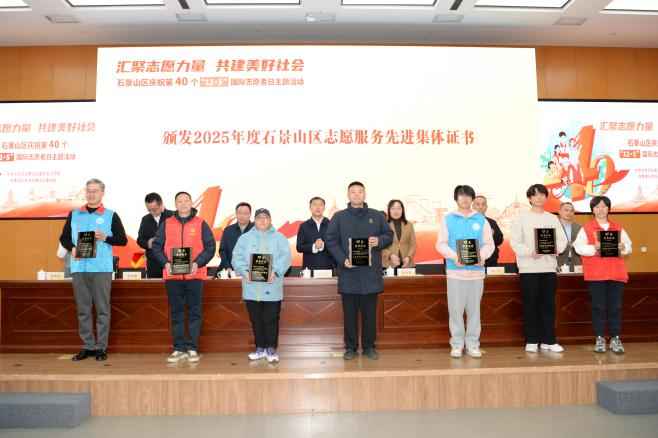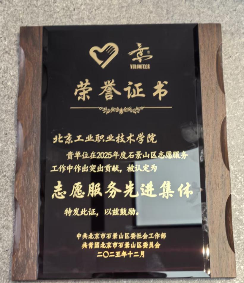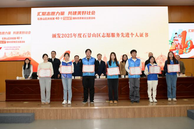 12月4日下午,石景山区举办“12·5”国际志愿者日主题活动。活动中,石景山区对2024年度在志愿服务工作中表现突出的集体与个人进行了集中表彰。我校凭借长期以来在志愿服务领域的扎实工作和突出贡献,荣获“2025年石景山区志愿服务先进集体”称号。同时,我校蒲京、王嘉琪等2名同学被认定为“石景山区志愿服务先进个人”。