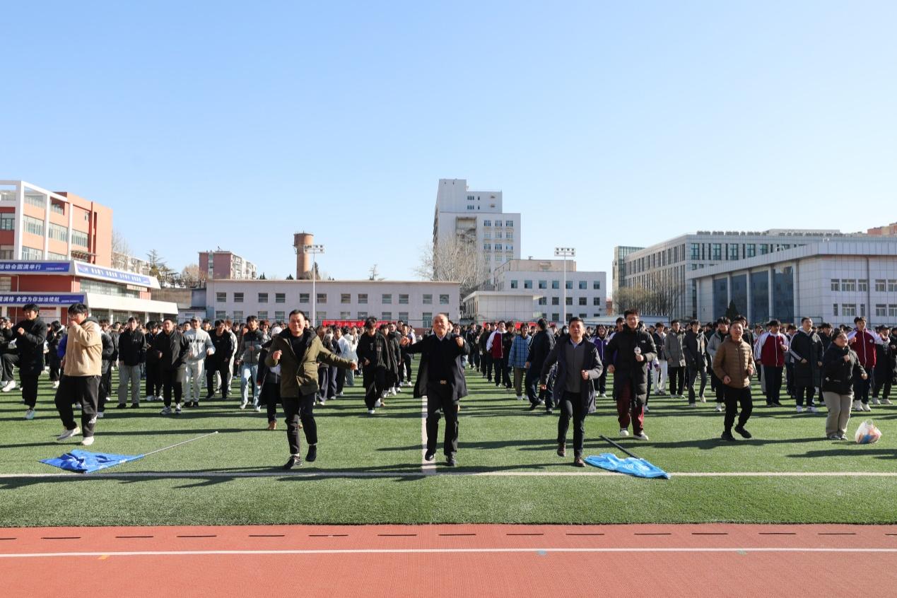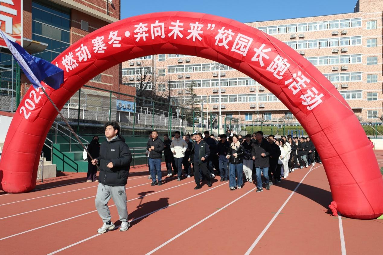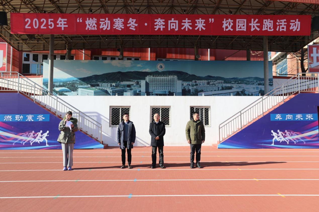 12月8日中午,“燃动寒冬 奔向未来”2025年校园长跑活动在学校田径场举行。校党委副书记魏晓东、学工处处长梁文学、校团委书记郑兴及各学院副书记等出席活动。活动由体育部副主任王琦主持。