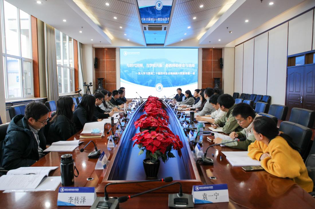 11月28日下午,北京工业职业技术学院2025年新入职教职工培训开班仪式在匠心楼第四会议室举行。校党委书记田红芳出席仪式,并与新入职教师进行座谈交流,随后结合学习宣传贯彻党的二十届四中全会精神,为他们讲授了内涵深刻的“第一课”。开班仪式由党委副书记魏晓东主持。