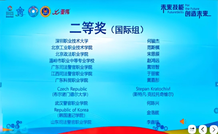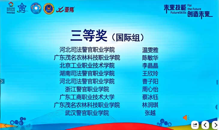 此次获奖是我校在技能人才培养、产教融合实践等方面成果的生动体现,更是学校积极响应“一带一路”倡议与金砖国家合作机制,推进职业教育国际化发展的重要突破。学校将以本次大赛为新的起点,持续深化教育教学改革,优化“法律+信息技术”复合型技能人才培养体系,加强师资队伍建设,为推动“一带一路”与金砖国家框架下的职业教育高质量发展贡献更大力量。