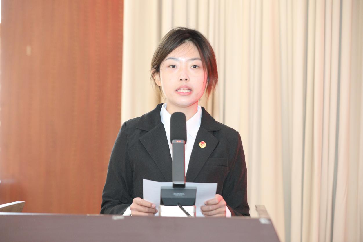 来自工商管理2532的章若涵同学代表团校学员发言,她表达了能够进入团校学习的荣幸与激动,并代表全体学员郑重承诺:将以最饱满的热情、最严谨的态度投入到后续的学习实践中,严格遵守团校各项规定,积极思考,勇于实践,着力提升自身的思想道德修养与综合能力素质,为早日成为一名政治坚定、能力突出、同学信赖的优秀共青团员和团学干部而不懈努力。