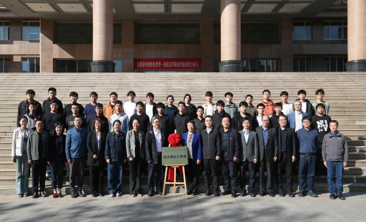 会上,田红芳指出,“航天雷达订单班”的设立,是学校贯彻落实国家“双高”建设任务,服务航天强国战略的体现。她强调,要以航天精神为引领,把握企业所需、学生所学、岗位所用,构建协同育人新模式。她勉励学生要坚定理想信念,练就过硬本领,践行精益求精的工匠精神和奋进拼搏的航天精神,努力成长为有志向、有担当、有能力的新时代高素质技能人才。
