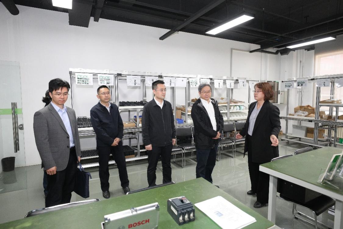 会前,党委副书记、院长柳长安陪同来宾参观了学校施耐德电气、汽车、机器人、数字化设计与制造、无人机等实训基地。