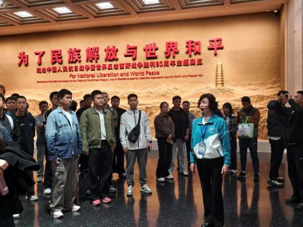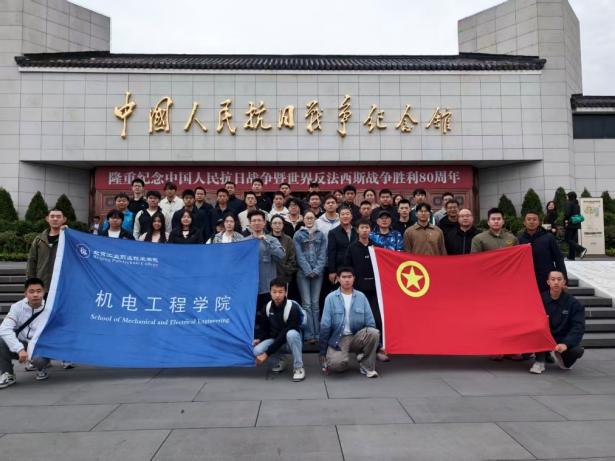 机电工程学院组织学生党员、团学干部赴中国人民抗日战争纪念馆研学,通过历史图片与实物展品重温抗战历程;“机蓝志益”服务队在重阳节走进隆恩寺养老服务中心,为老人送上长寿花、共制爱国主题纽扣画,慰问活动中,志愿者与老人合唱《我和我的祖国》,实现“敬老情长”与“爱国薪火”的双向传承。