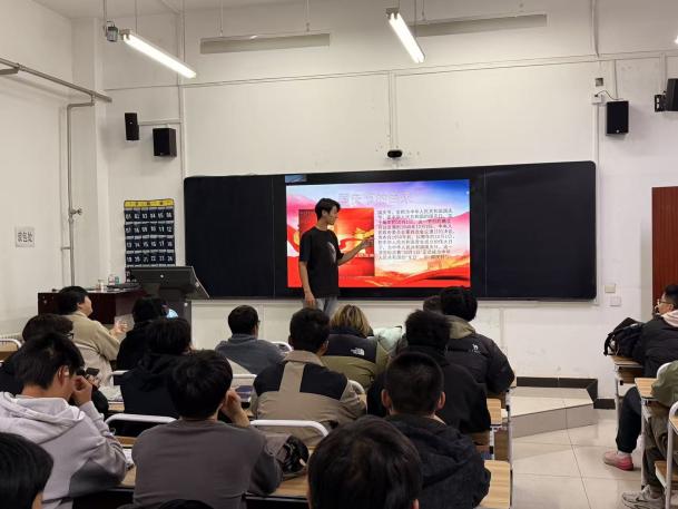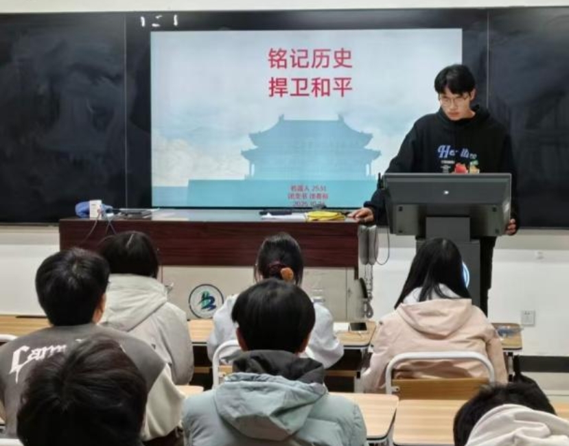 机电工程学院在主题团日活动中,组织各班级深入学习习近平总书记在纪念中国人民抗日战争暨世界反法西斯战争胜利80周年大会上的重要讲话精神,围绕抗战精神展开讨论;在新中国成立76周年之际,组织各支部学习《中华人民共和国爱国主义教育法》,结合革命先烈事迹与时代楷模案例,帮助学生理解“爱国是公民根本责任”的深刻内涵。