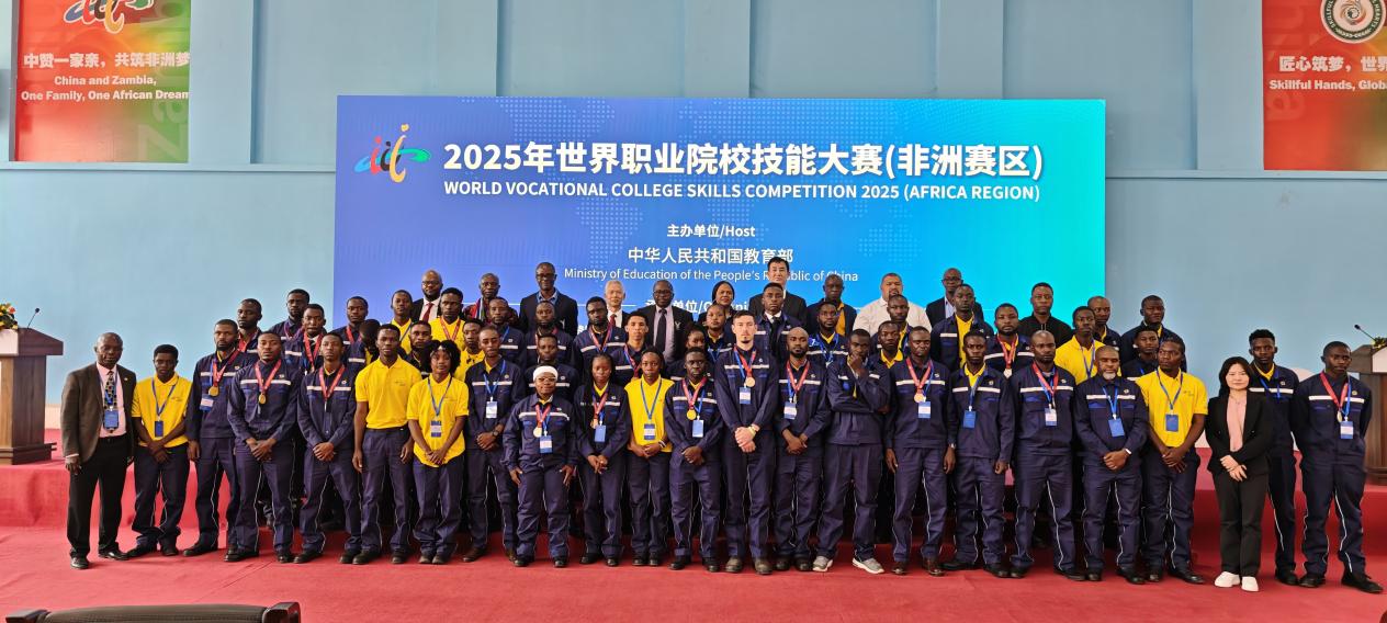 2025年9月4日至6日,由北京市教育委员会、中国有色矿业集团、有色金属工业人才中心共同协办,我校联合中国-赞比亚职业技术学院、中色卢安夏铜业有限公司共同承办的2025年世界职业院校技能大赛非洲赛区比赛在赞比亚卢安夏成功举行。大赛聚焦机械设计与制造、机电设备安装与运维两大赛道,吸引了来自南非、尼日利亚、坦桑尼亚、赞比亚等国家的28支队伍近60名选手同台竞技。在北京市教委的统筹指导下,学校成立专项工作组,精心组织赛事筹备与运行,选派优秀裁判团队赴赞执裁,保障了赛事公平、顺利进行。中国-赞比亚职业技术学院代表队在比赛中表现优异,包揽两个赛道的三枚金牌,并成功晋级全球总决赛排位赛。