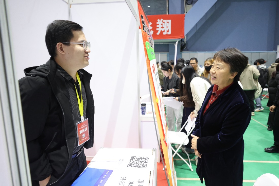 学校党委书记田红芳,党委副书记、院长柳长安等校领导班子成员来到招聘会现场,逐一走访企业展位,与用人单位和毕业生深入交流,调研行业人才需求动向,了解招聘需求、岗位计划,向用人单位积极推荐我校毕业生;要求学校各部门、各学院要协同配合、形成合力,积极对接企业用人需求,持续优化人才培养体系,提升人才供需匹配度,共同做好毕业生就业服务工作;鼓励毕业生树立正确的就业观,提升综合素质,把握就业机遇,力争实现“早就业、就好业”。