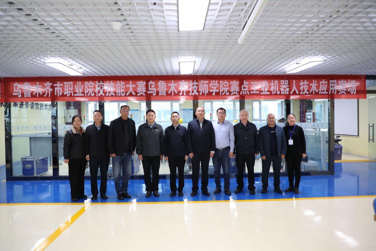 签约仪式前,柳长安与自治区教育厅职成处处长郝治、乌鲁木齐市教育局副局长郑阳一起前往乌鲁木齐职业技术学院承办的技能大赛现场观赛。